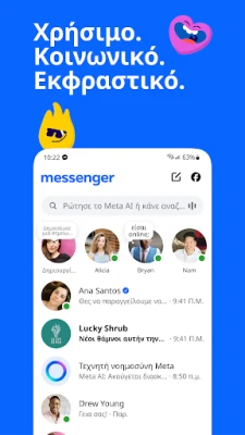 Φέρνοντας την καινοτομία στο προσκήνιο, το Meta AI είναι ο έξυπνος συνεργάτης σας εντός του Messenger, έτοιμο να απαντήσει σε κάθε ερώτηση, να προσφέρει πολύτιμες συμβουλές και να σας υποστηρίξει σε διάφορες εργασίες. Αφήστε τη φαντασία σας ελεύθερη αξιοποιώντας τις δημιουργικές του δυνατότητες για να δημιουργήσετε, να επεξεργαστείτε και να ανιμάρετε εικόνες, προσθέτοντας μια νέα διάσταση στην ψηφιακή σας έκφραση. Ανακαλύψτε έναν κόσμο απεριόριστων δυνατοτήτων με έναν βοηθό που είναι πάντα δίπλα σας. *Σημείωση: Το Meta AI είναι διαθέσιμο σε επιλεγμένες γλώσσες και χώρες, με επέκταση σύντομα.*