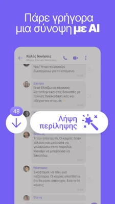 Το Rakuten Viber μετατρέπει την καθημερινή σας επικοινωνία σε μια απρόσκοπτη και πλούσια εμπειρία. Είτε επιθυμείτε να στείλετε ένα απλό μήνυμα, μια φωτογραφία, ένα βίντεο, ή να μοιραστείτε οποιοδήποτε αρχείο, η σύνδεση με αγαπημένα πρόσωπα, φίλους και συναδέλφους είναι πλέον πιο εύκολη από ποτέ. Απολαύστε κρυστάλλινο ήχο και εικόνα στις δωρεάν φωνητικές και βιντεοκλήσεις, συνδέοντας έως και 50 άτομα ταυτόχρονα, όπου κι αν βρίσκεστε στον κόσμο. Ξεχάστε τα παραδοσιακά SMS και αναβαθμίστε την επικοινωνία σας με πληθώρα επιλογών, από αυτοκόλλητα και GIFs μέχρι δημιουργικά βιντεομηνύματα.