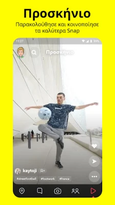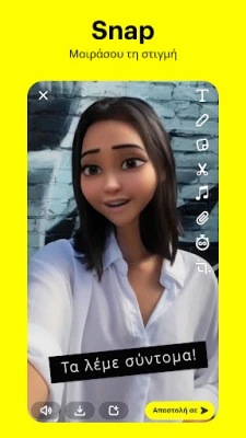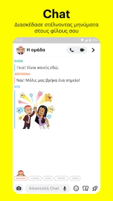 Βυθίσου στο Προσκήνιο του Snapchat για να ανακαλύψεις τις πιο συναρπαστικές δημιουργίες από την παγκόσμια κοινότητα – μπορείς να υποβάλεις και τα δικά σου Snap ή απλά να απολαύσεις και να μοιραστείς τα αγαπημένα σου. Ο Χάρτης του Snapchat σου επιτρέπει να μοιράζεσαι την τοποθεσία σου με τους κολλητούς σου ή να παραμένεις αόρατος με τη Λειτουργία Φαντάσματος, ενώ σου προσφέρει μια μοναδική ματιά στο τι σχεδιάζουν οι φίλοι σου ή σε ζωντανές Ιστορίες από όλο τον κόσμο. Μην αφήσεις καμία στιγμή να χαθεί: οι Αναμνήσεις σου επιτρέπουν να αποθηκεύεις ατελείωτες φωτογραφίες και βίντεο, να τα επεξεργάζεσαι και να δημιουργείς νέες Ιστορίες. Τέλος, τα Προφίλ Φιλίας προσφέρουν έναν ιδιωτικό χώρο για κάθε σχέση, όπου μπορείτε να ανακαλύψετε κοινά στοιχεία με τα Φυλαχτά και να θυμάστε τις στιγμές που μοιραστήκατε, καθιστώντας κάθε φιλία ακόμα πιο ξεχωριστή στο Snapchat.